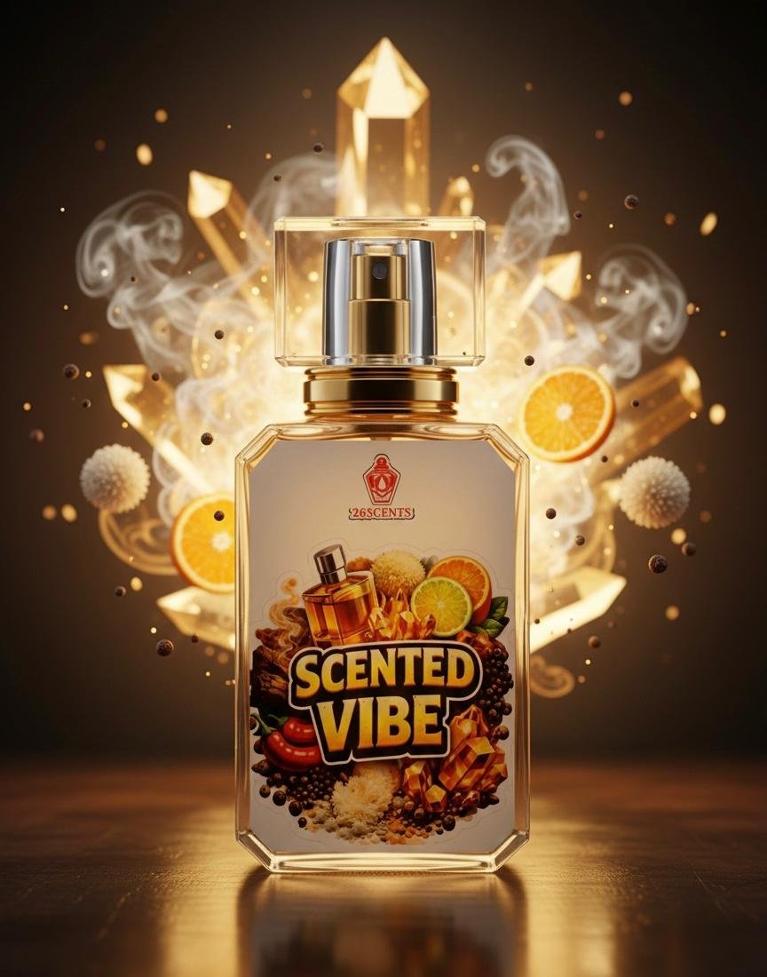 Scented Vibe is a perfect harmony of freshness and warmth. It opens with bright citrus notes that energize the senses, followed by a gentle wave of warm spicy accords that add depth and character. As the fragrance settles, rich woody tones merge with soft powdery musk and amber, creating a long-lasting, sensual trail. Designed for everyday elegance, Scented Vibe leaves behind a confident and unforgettable impression.